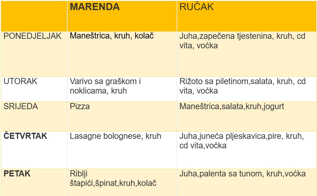Jelovnik školske kuhinje